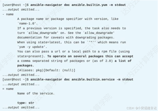 ...output omitted...tasks:- name: Ensure required packages are installedansible.builtin.yum: # 删除包安装任务中的循环,使用列表方式name:- httpd- mod_ssL- httpd-tools- mariadb-server- mariadb- php- php-mysqlndstate: present