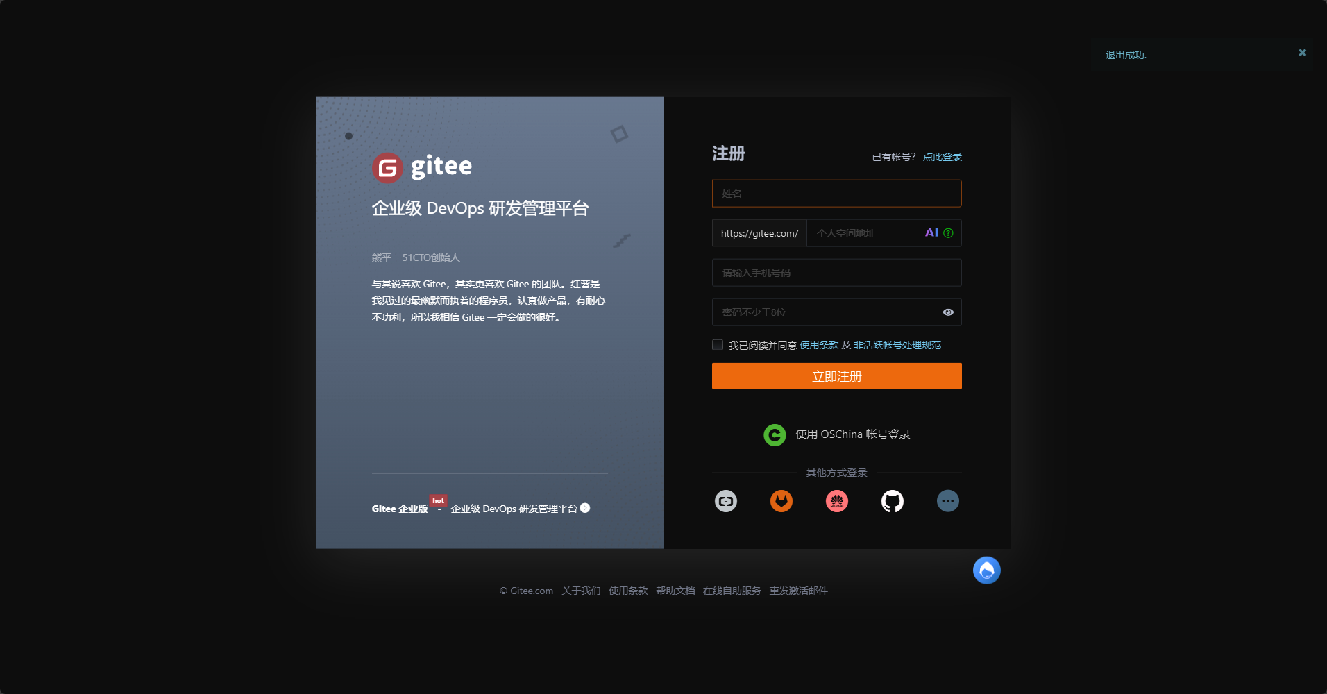 打开https://gitee.com -