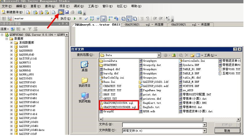 3、点击打开按键,选择用于帐套升级的 sql 脚本文件,找到后点击打开(先执行带 db 的【有报错不用管】再执行不带 db 的【不能有报错】)。