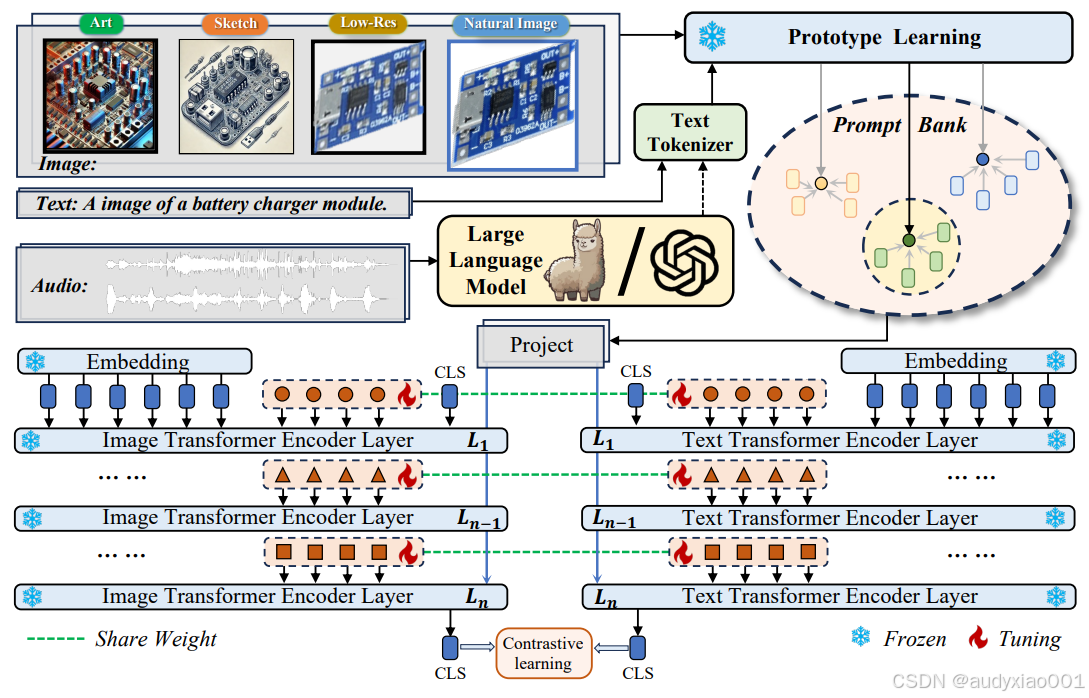 Prompt Bank:动态存储可学习的语义标签库。当输入模糊查询(如一张低分辨率的电路实验图)时,它会快速匹配“电路”、“实验图”、“低分辨率”等标签,为查询补充语义信息,大幅提升模型对抽象和模糊查询的理解精度。