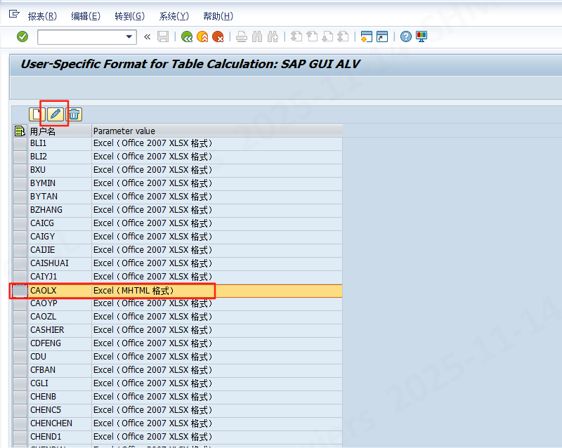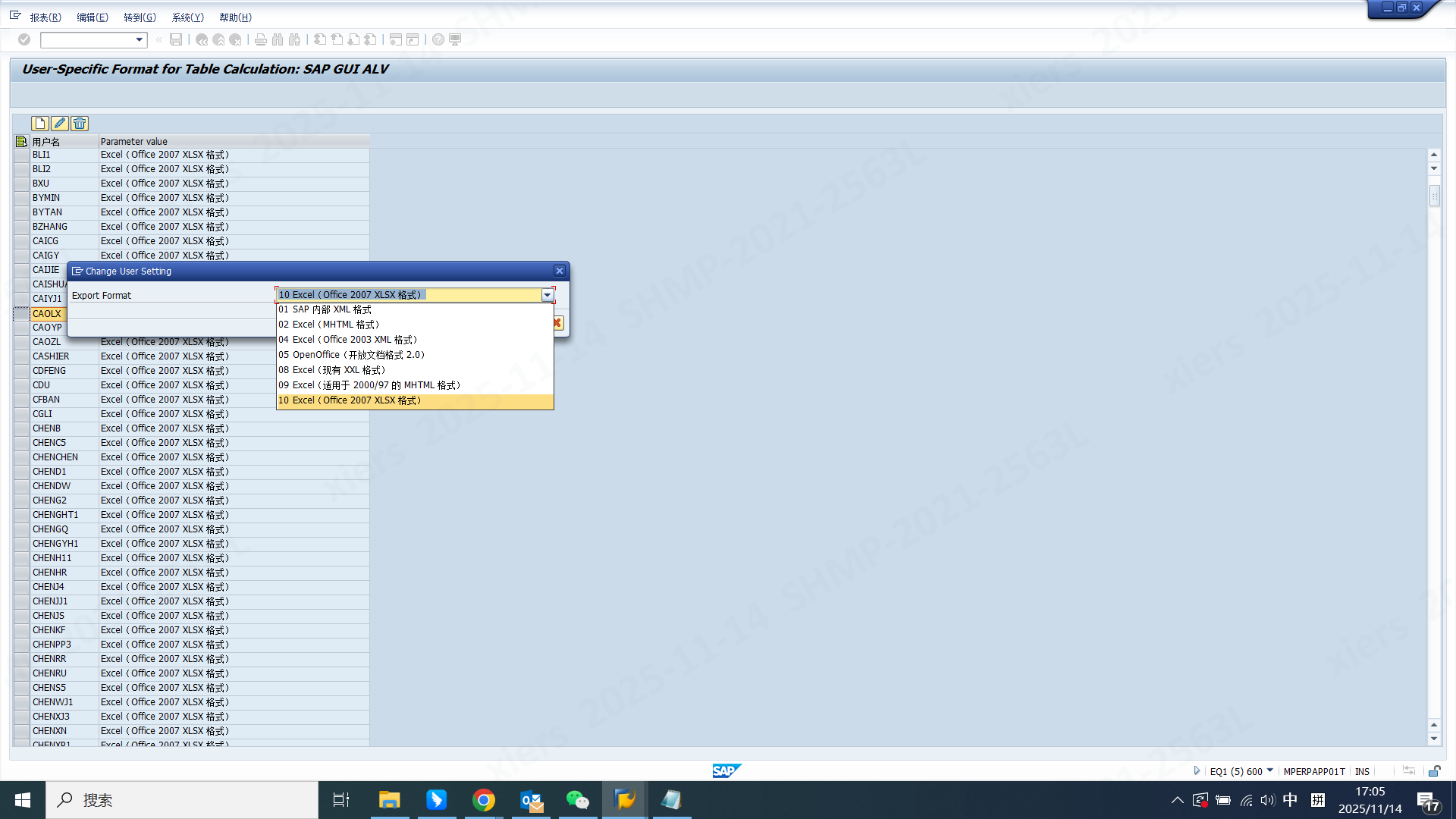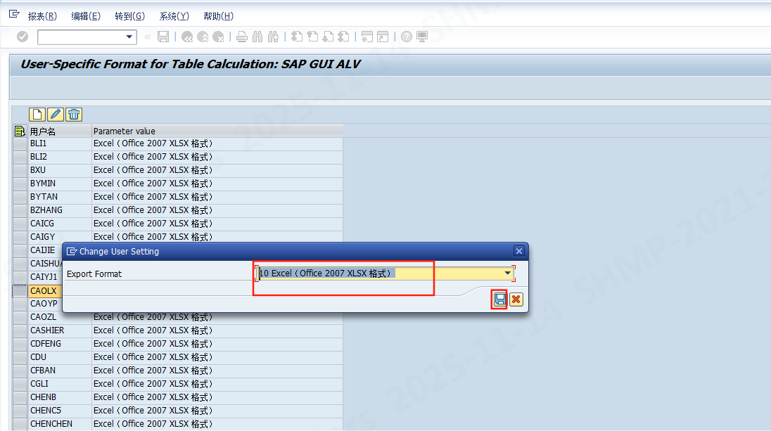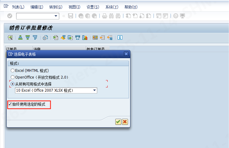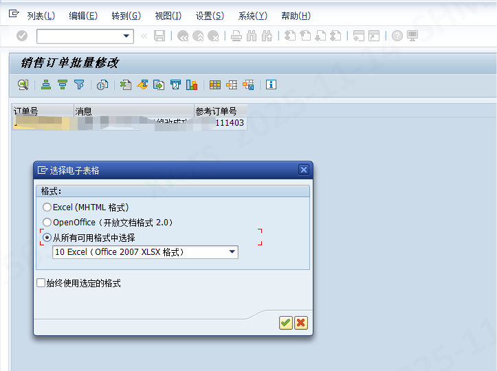 SAP 如何恢复电子表格EXCEL导出允许选择格式
