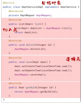 ② 描述切入点方法通常基于接口描述,而不是直接描述实现类,增强拓展性