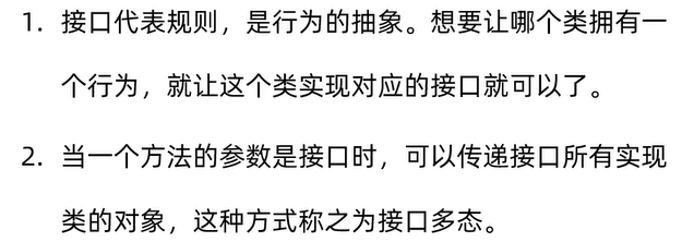 接口:是一种规则,接口不表示事物,它更侧重于行为,是对行为的抽象