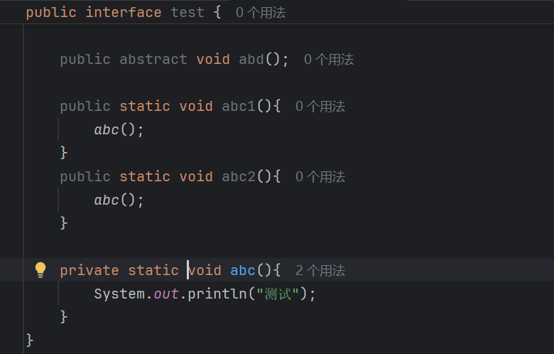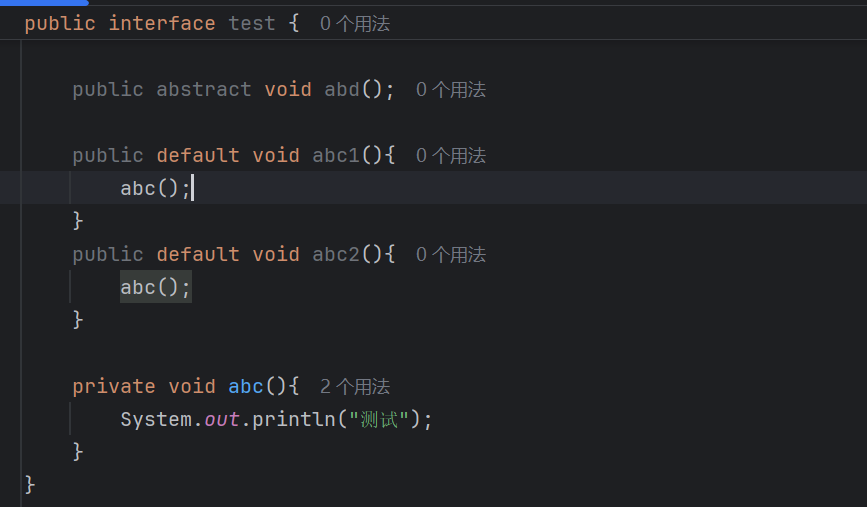 私有方法通常是把接口中相同的代码抽取出来,供接口中默认方法调用的