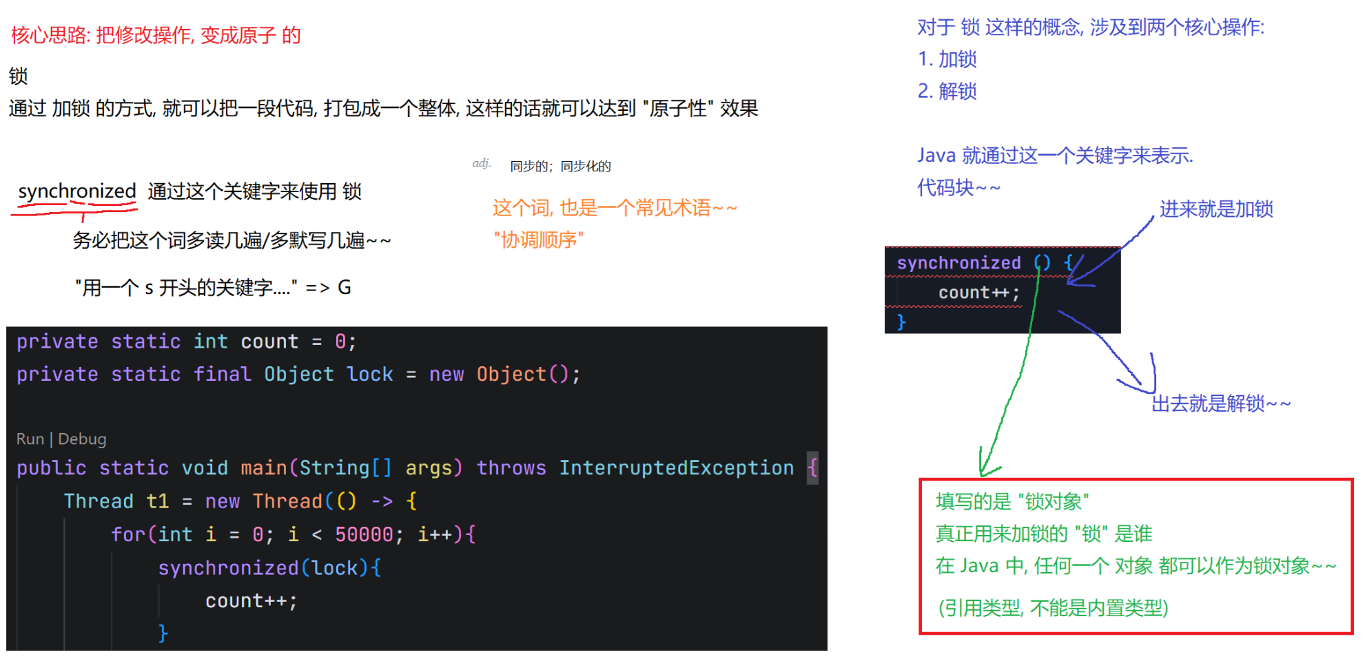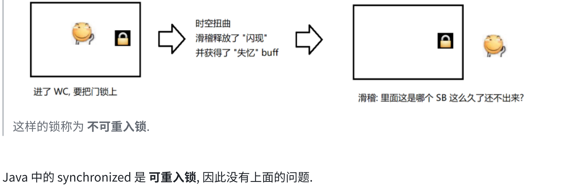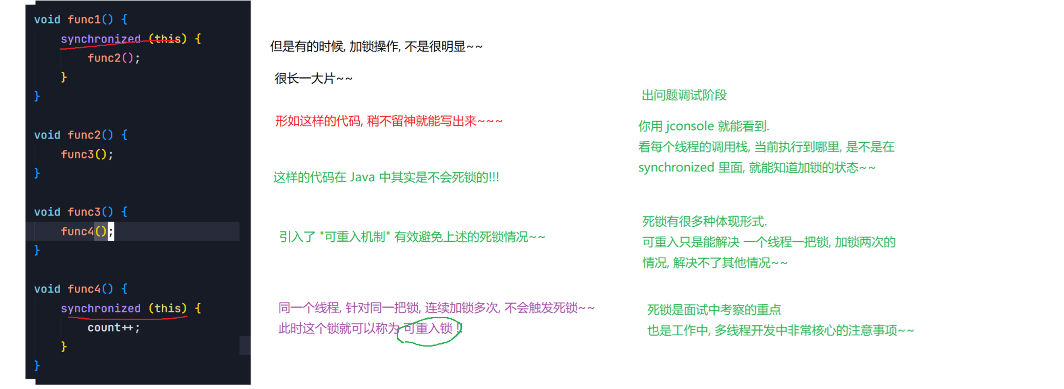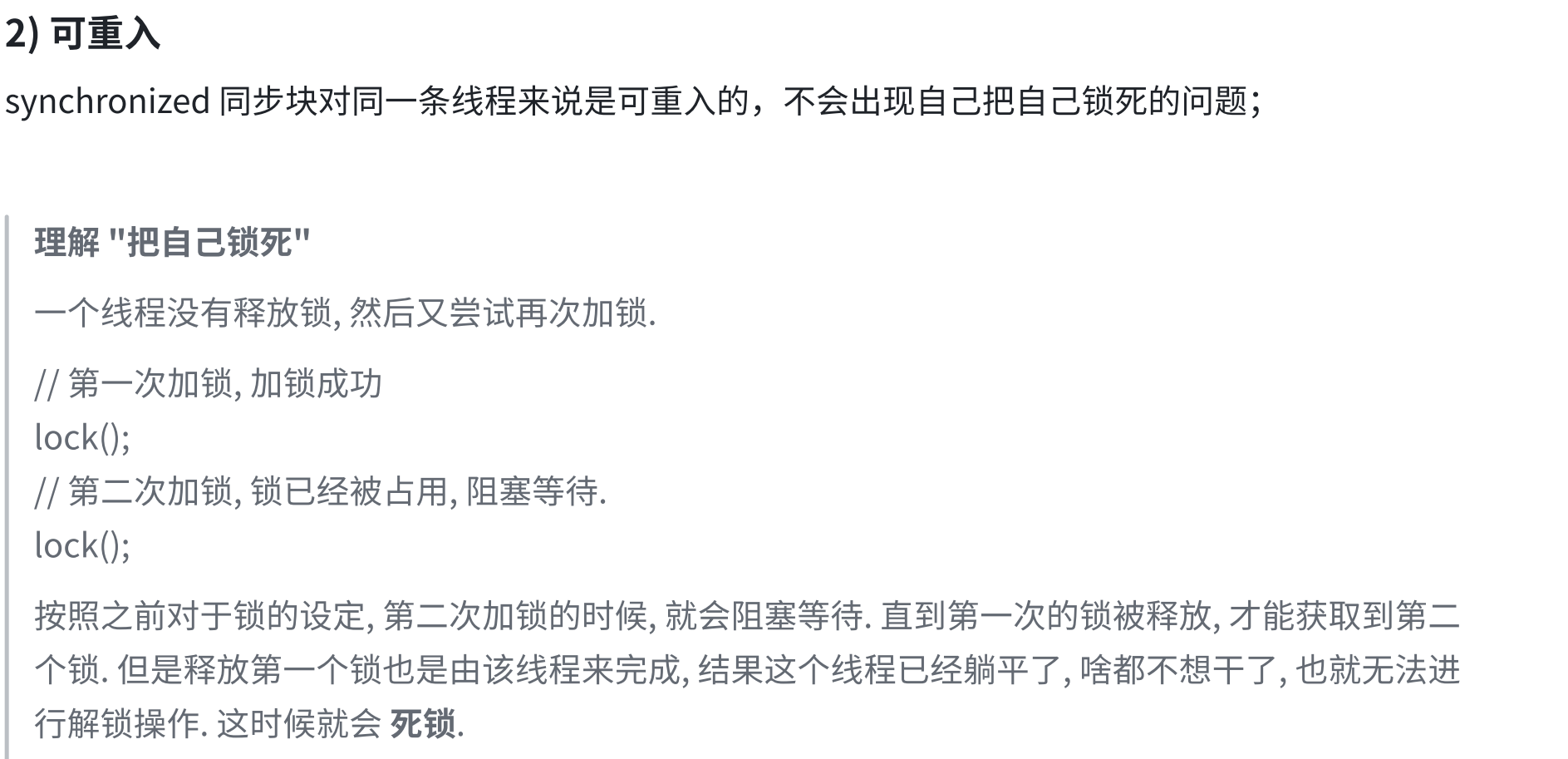Object lock1 = new Object();Object lock2 = new Object();Thread t1 = new Thread() {@Overridepublic void run() {synchronized (lock1) {synchronized (lock2) {// do something...}}}};t1.start();Thread t2 = new Thread() {@Overridepublic void run() {synchronized (lock1) {synchronized (lock2) {// do something...}}}};t2.start();6.synchronized关键字 - 监视器锁(monitor lock)
