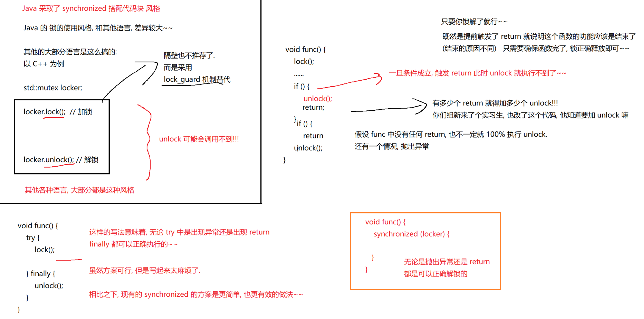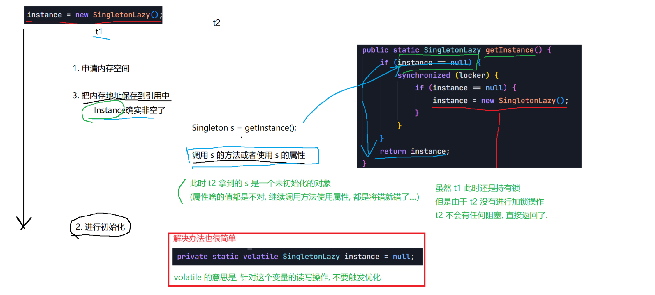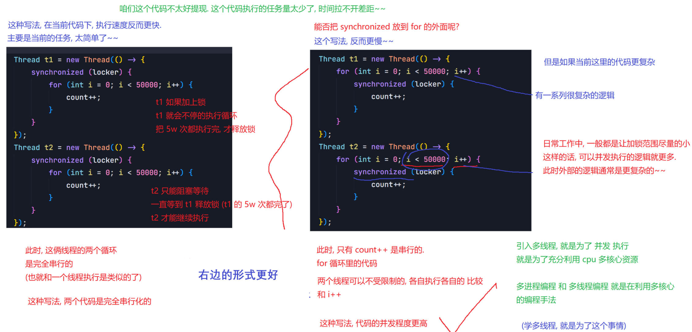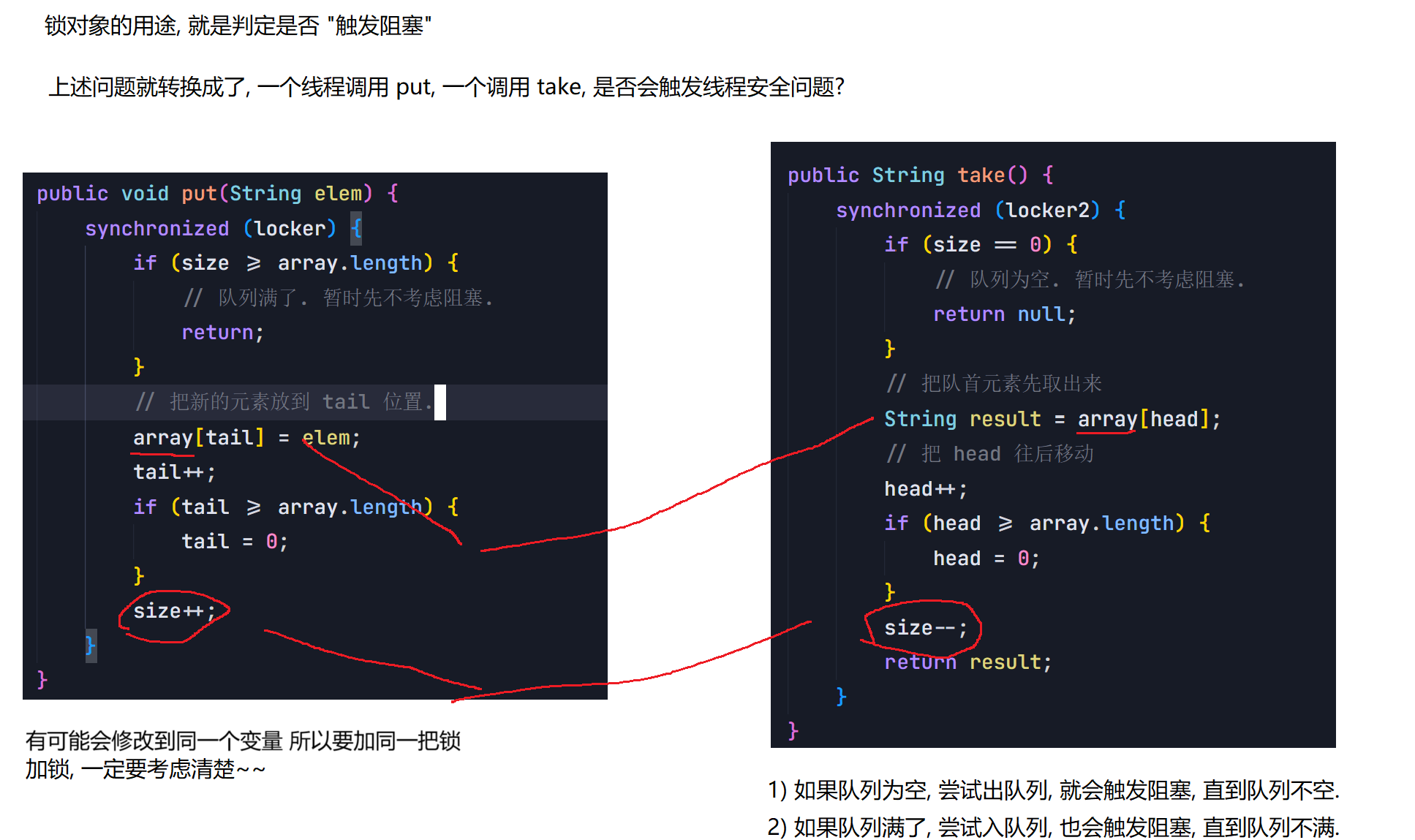 Object lock1 = new Object();Object lock2 = new Object();Thread t1 = new Thread() {@Overridepublic void run() {synchronized (lock1) {synchronized (lock2) {// do something...}}}};t1.start();Thread t2 = new Thread() {@Overridepublic void run() {synchronized (lock1) {synchronized (lock2) {// do something...}}}};t2.start();6.synchronized关键字 - 监视器锁(monitor lock)