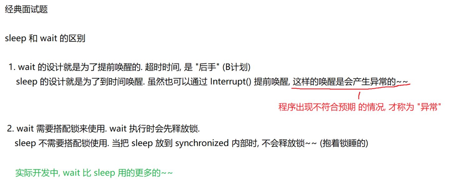 7.3 wait和sleep的对比(面试题)
