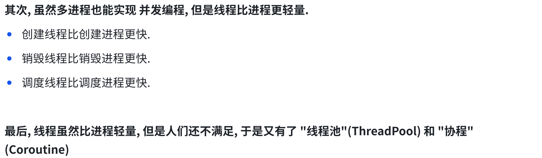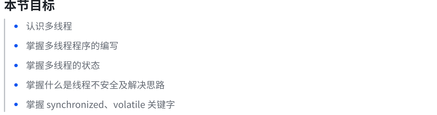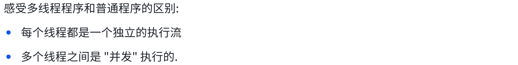 package thread;public class Demo7 {public static void main(String[] args) throws InterruptedException {Thread t = new Thread(() -> {for(int i = 0; i < 5; i++){System.out.println("hello thread");try {Thread.sleep(1000);} catch (InterruptedException e) {// TODO Auto-generated catch block//e.printStackTrace();break;}}});System.out.println("主线程开始");t.start();System.out.println("主线程等待之前");t.join();System.out.println("主线程等待之后");System.out.println("主线程结束");}