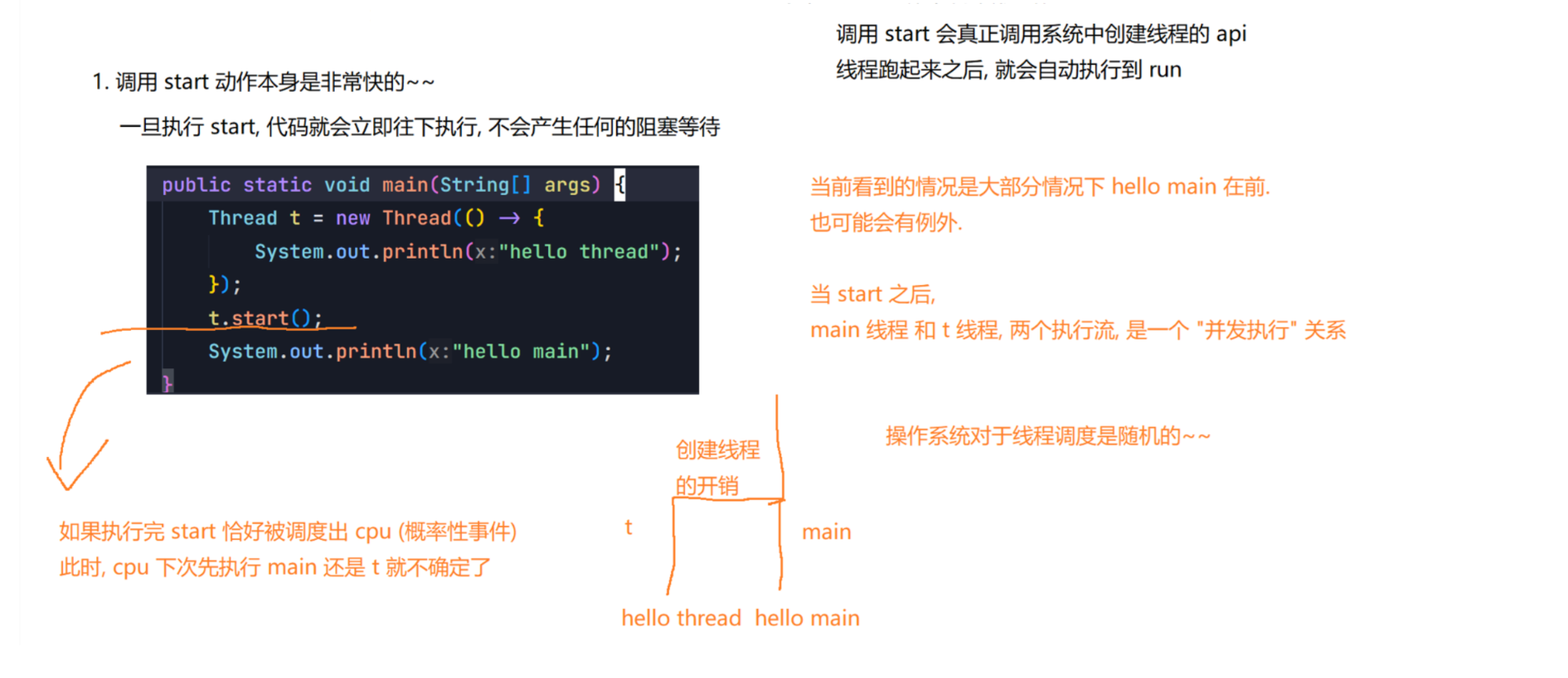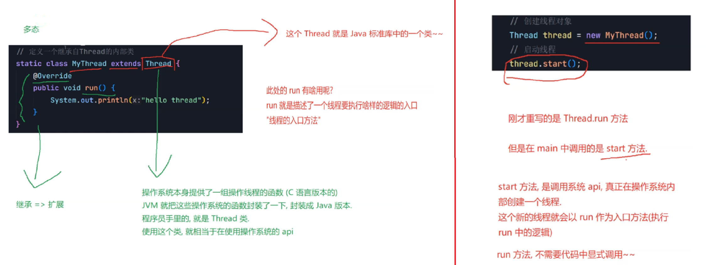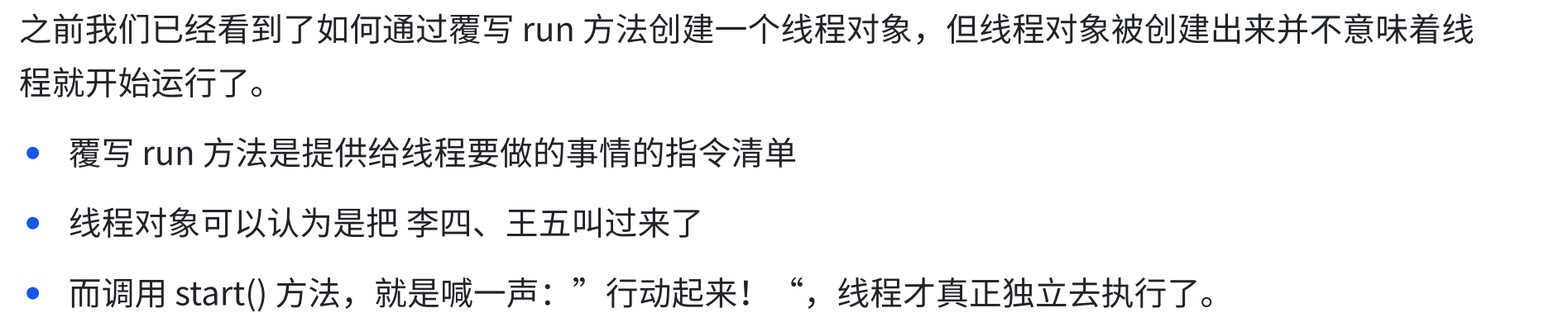调用start方法,才真的在操作系统的底层创建出⼀个线程。