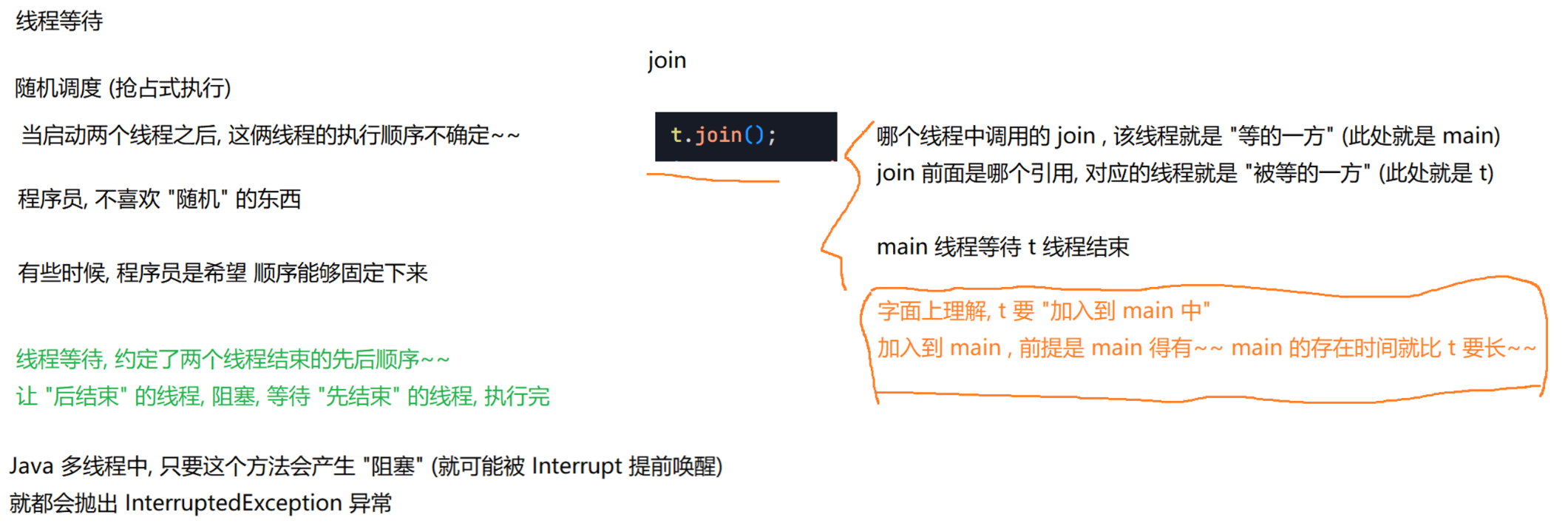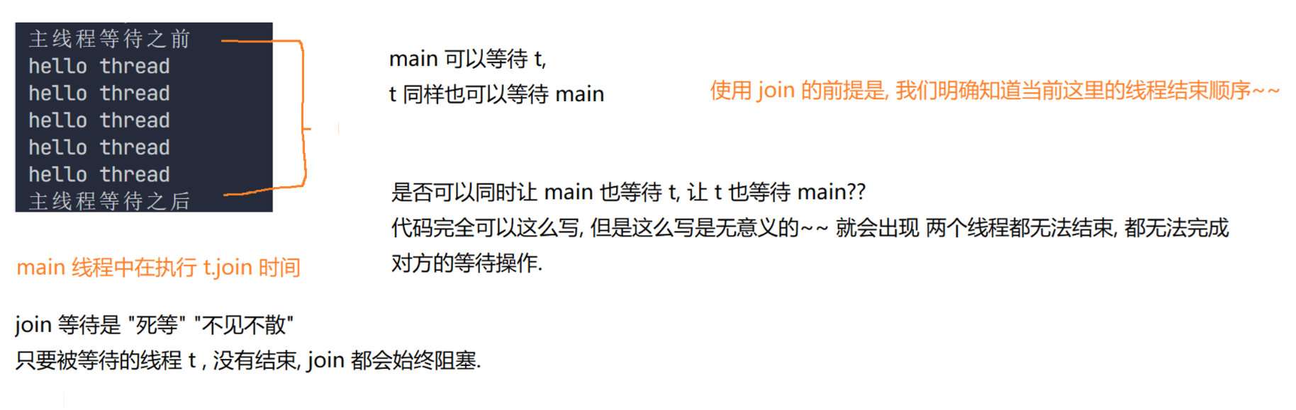 有时,我们需要等待一个线程完成它的工作后,才能进的下⼀步工作,这时我们需要⼀个方法明确等待线程的结束。