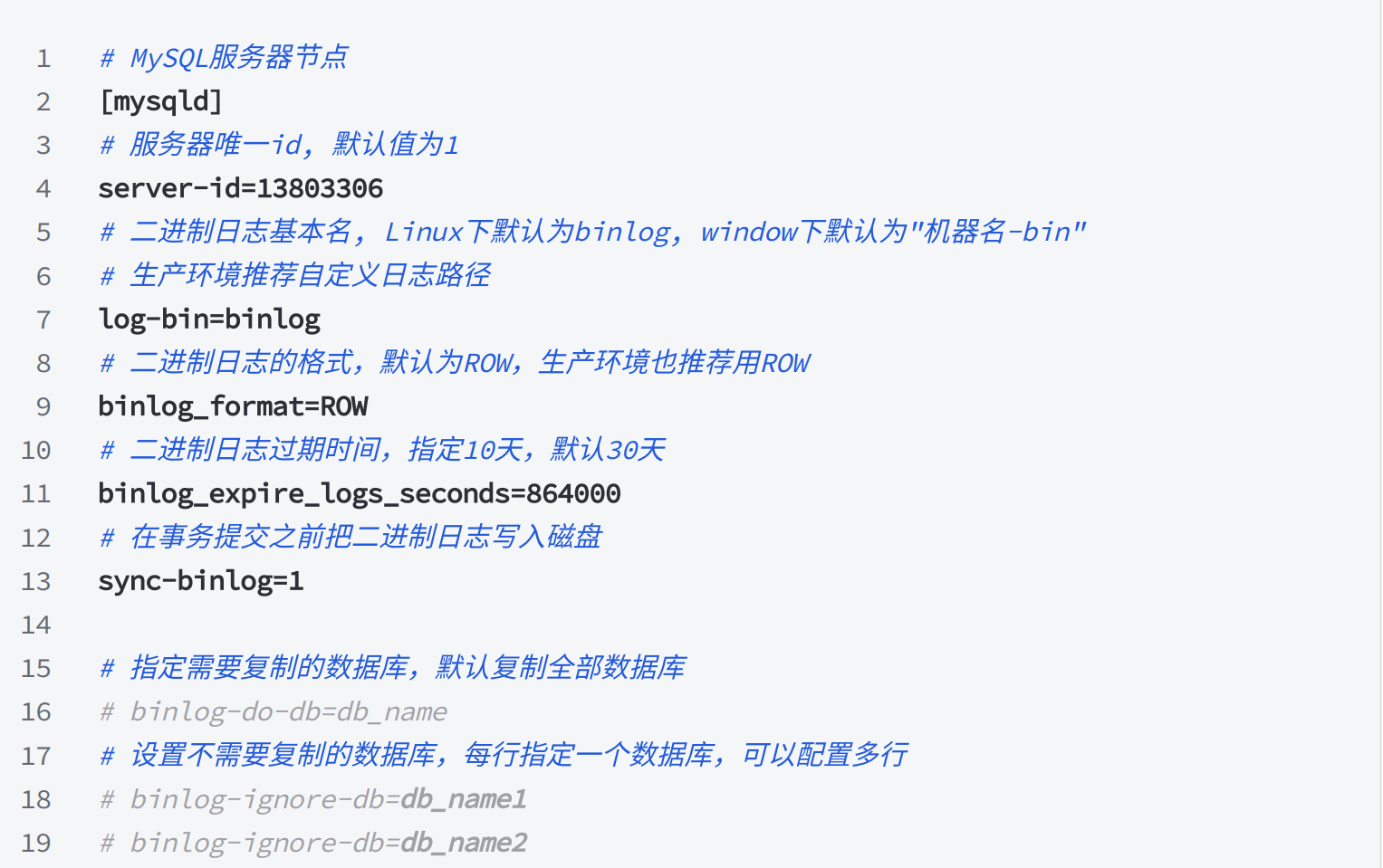 在宿主机的主服务器配置映射⽬录 /bit/mysql/master/conf 中创建配置⽂件 my.cnf ,并完成以下配置