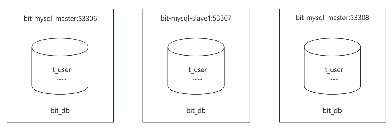 - 主服务器:容器名bit-mysql-master 端⼝号 53306