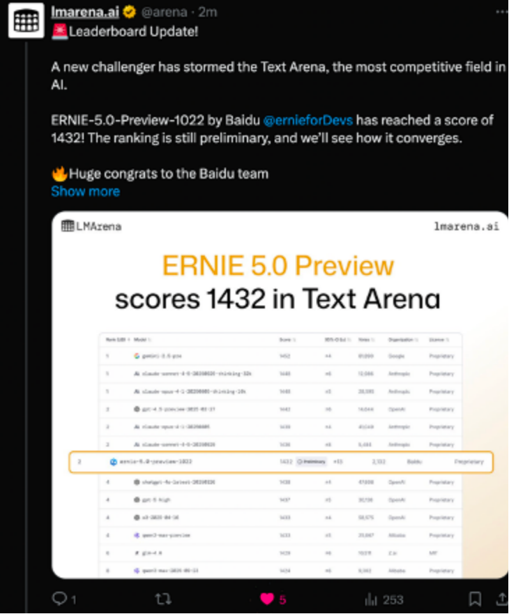 整体来看,从文本到多模态,这一系列数据至少说明:文心 5.0 的能力已经不再停留在发布会描述,而是在公开评测中有相对稳定、可复现的表现。