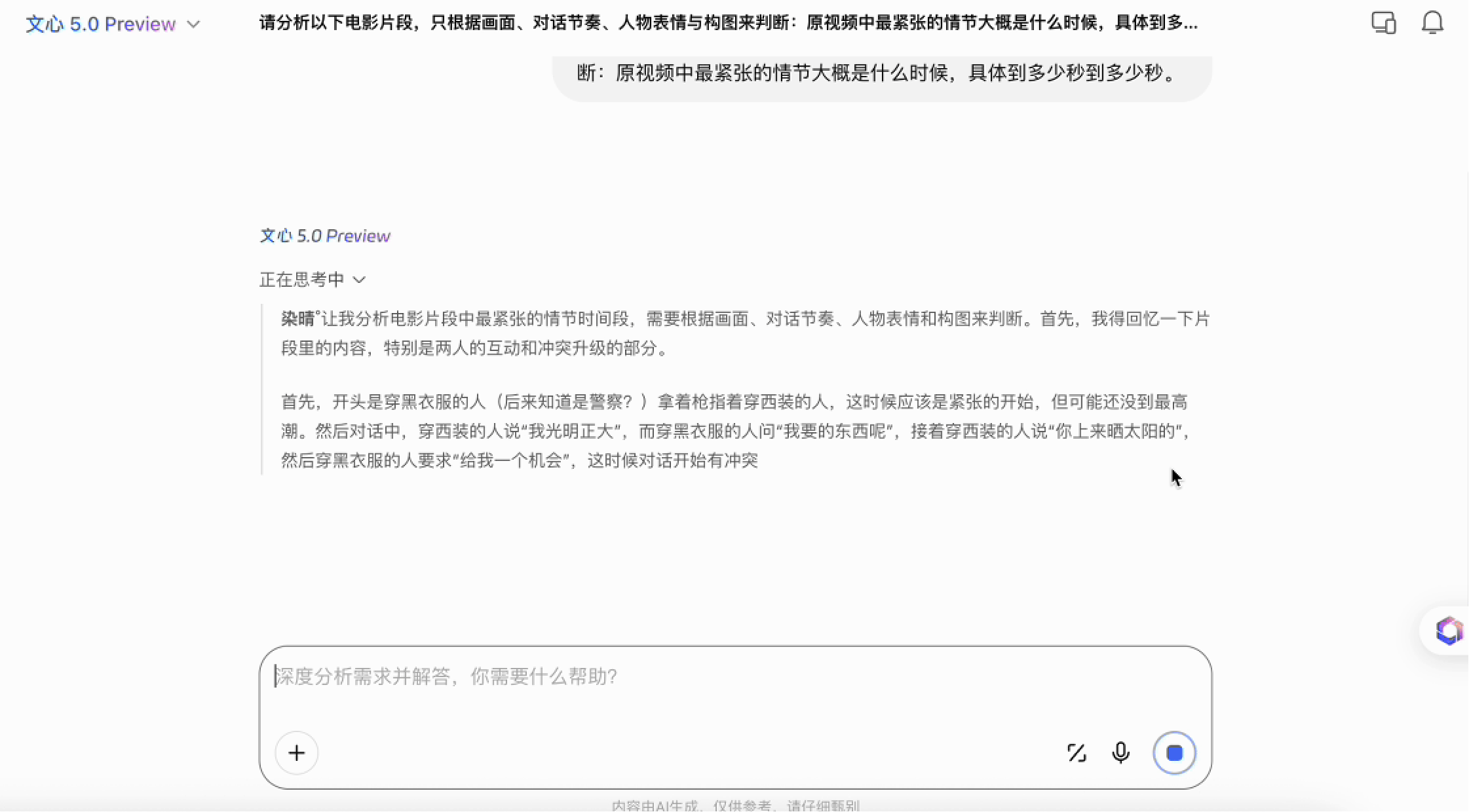 后一个测试,是我最想看的——影视剧情节、时序与情绪的综合分析。我直接让它基于无间道“”指定片段重建一个“带叙事理解”的画面,看它的镜头语言、人物关系、节奏把握会不会生硬。