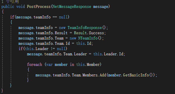 后处理,给teamInfo添加到响应协议里面,给队伍成员同步到客户端。
