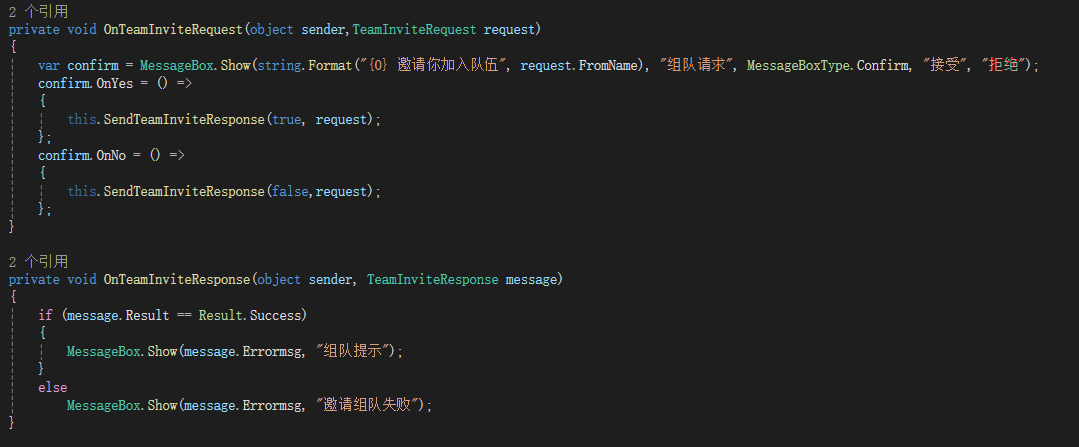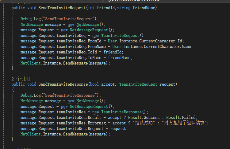 服务端的发送邀请以及响应邀请都和好友系统里面的差不多,这里就不多描述了。