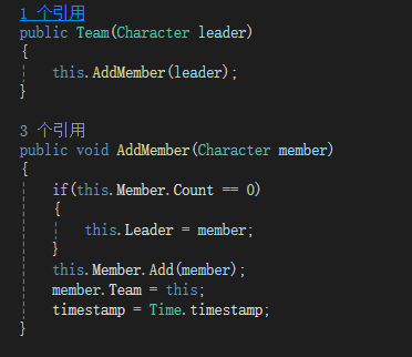 构造时调用添加成员方法,添加成员时判断一下是否为第一个成员。是就设置为队长。
