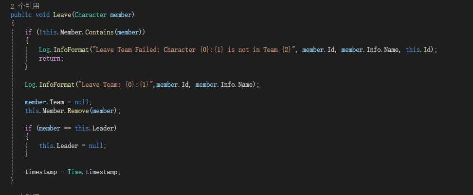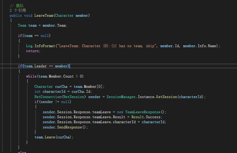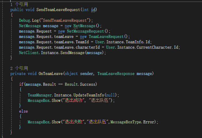 离开队伍的时候,调用Manager里面的方法处理离开的逻辑。