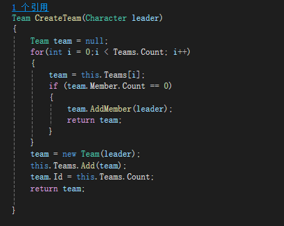 添加成员时,如果队长的队伍为空会先调用创建队伍接口,如果有空闲的队伍直接拿过去用,否则创建一个新队伍,之后调用Model的添加成员。