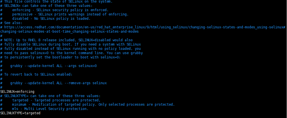 rhel9中SELinux默认的策略是targeted,如果要使用其他策略需要额外俺装相应的策略包:selinux-policy-minimum、selinux-policy-mls
