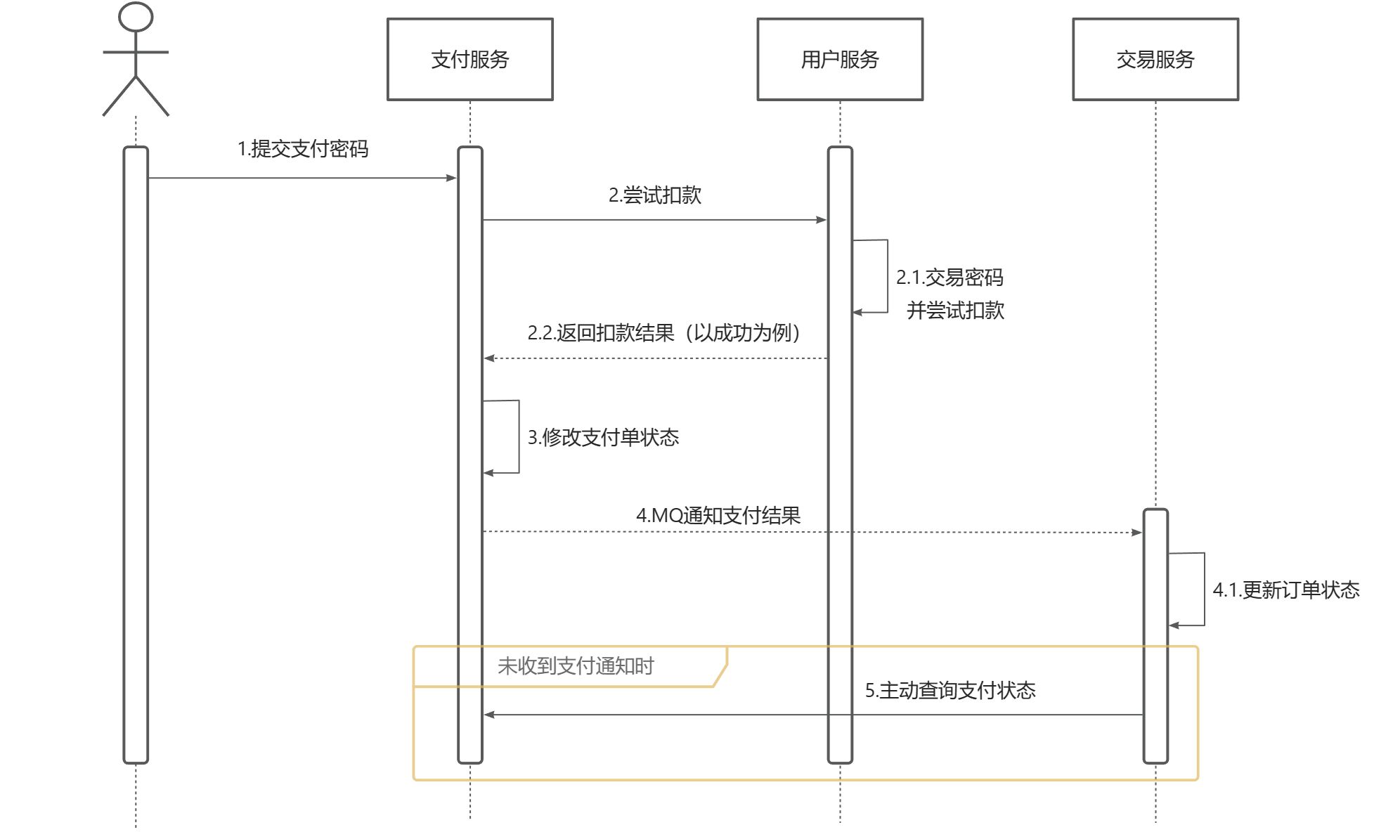 接下来,我们就在交易服务中利用延迟消息实现订单支付状态的同步。其大概思路如下: