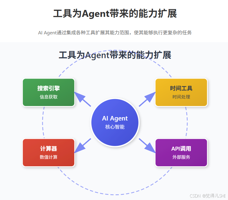 人类解决问题的过程,本质上是不断使用工具的过程 —— 遇到数学问题时使用计算器,查询信息时使用搜索引擎,记录时间时查看钟表。同样,AI Agent 要具备强大的问题解决能力,也必须拥有使用工具的能力。