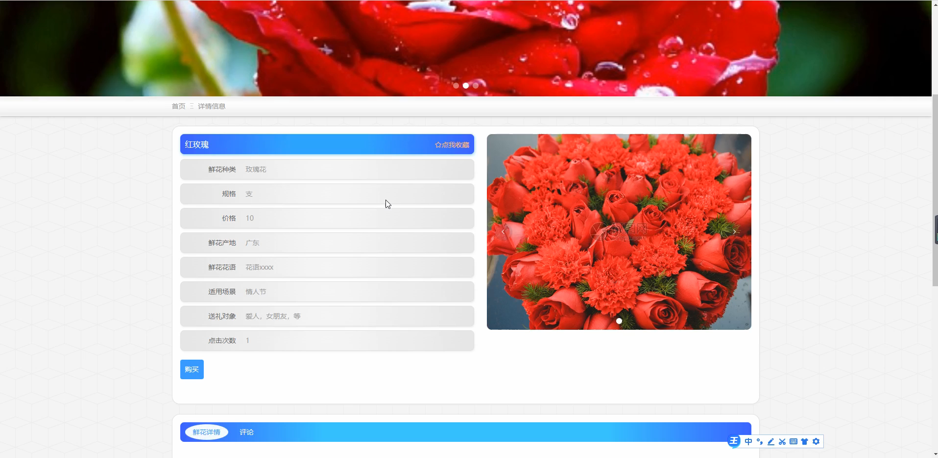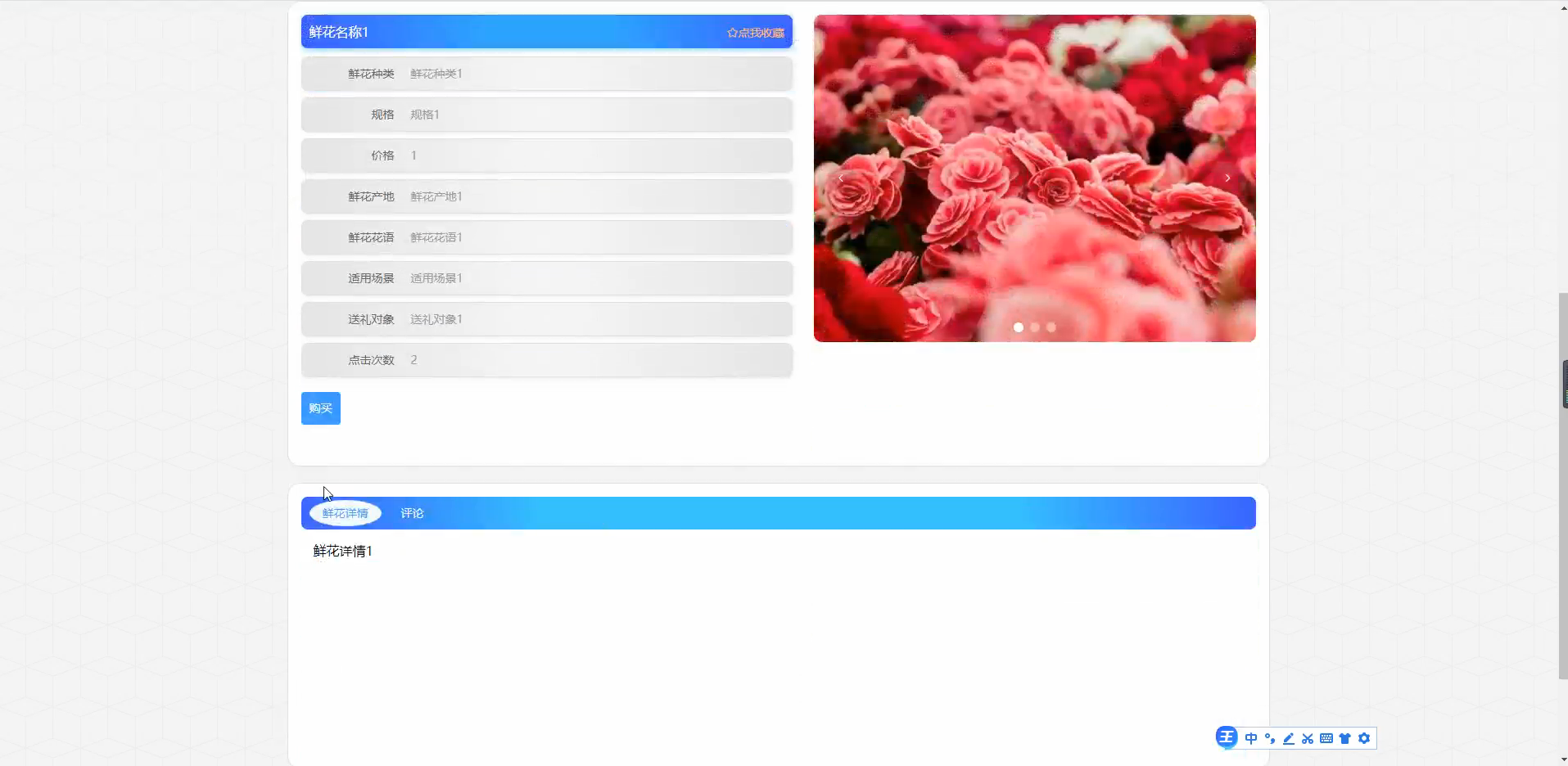 - 实现鲜花的展示效果,如图片轮播、缩放查看等,提升用户的视觉体验。