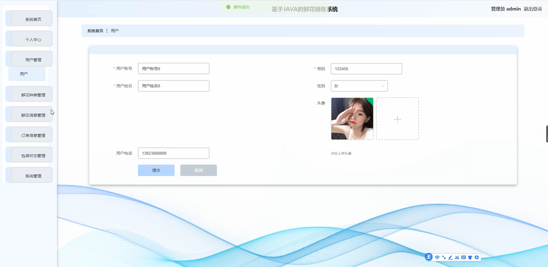 - 实现数据库的连接和操作,对用户数据、鲜花商品数据、订单数据等进行存储、查询、更新和删除等操作。