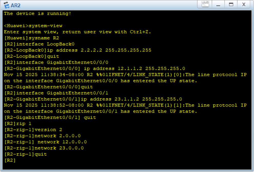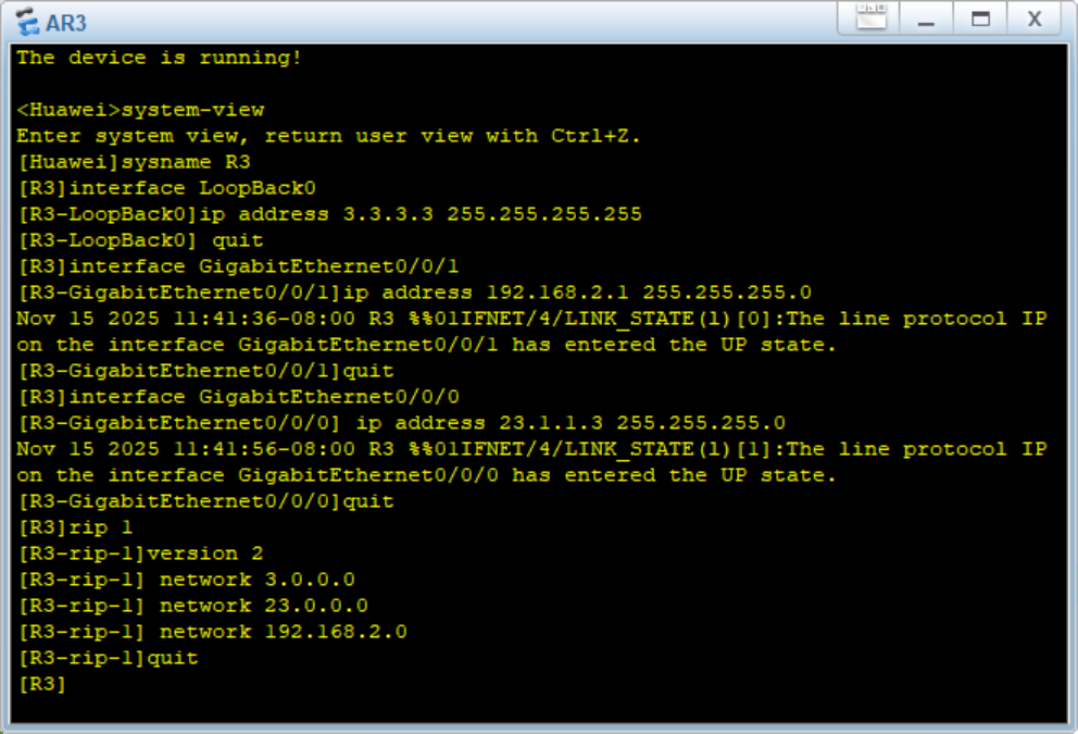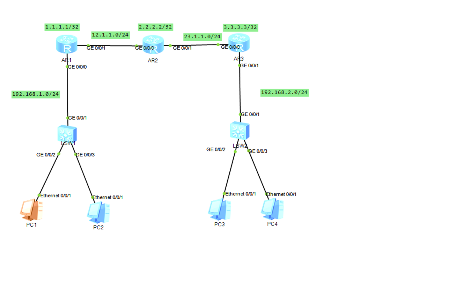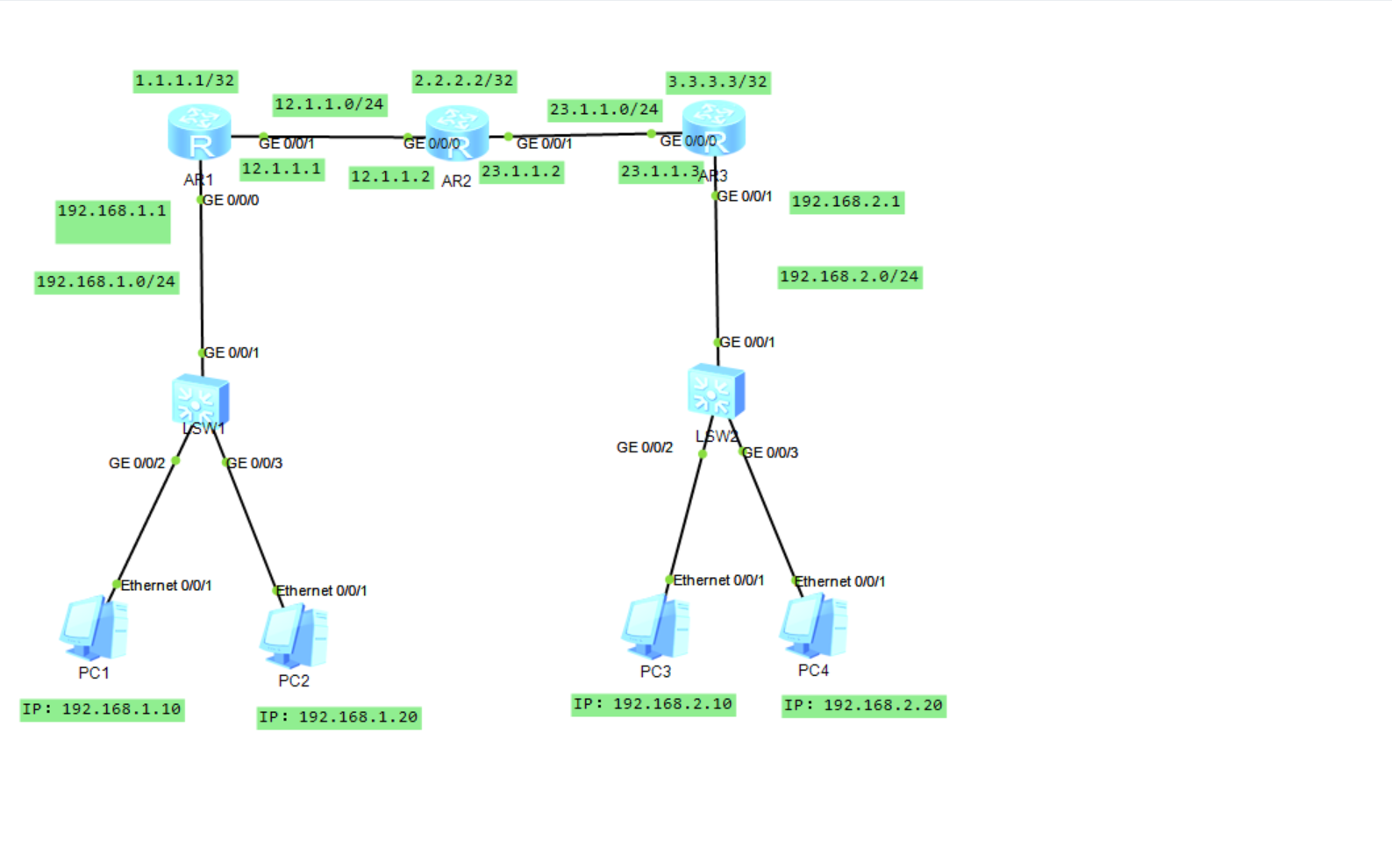 2.2.2.2/32(根据拓扑推断)R3 需要配置环回地址: