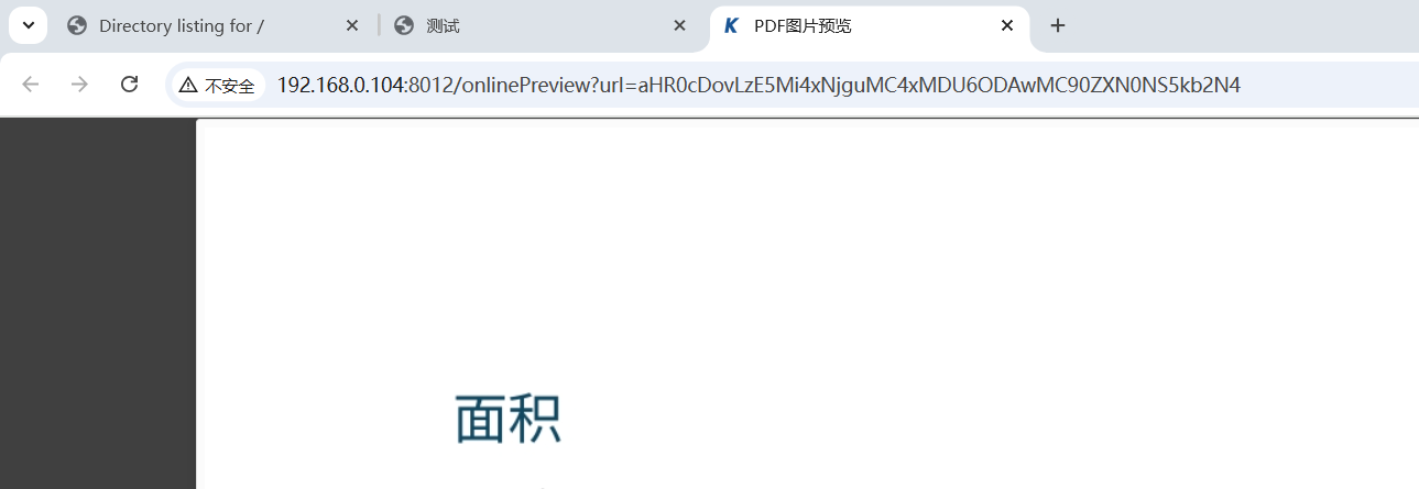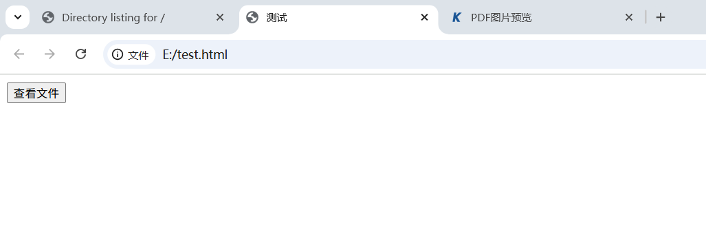 <html><head><title>测试</title></head><script type="text/javascript" src="https://cdn.jsdelivr.net/npm/js-base64@3.6.0/base64.min.js"></script><script type="text/javascript">// npm在线安装// npm install --save js-base64@3.6.0function jump(){//要预览文件的访问地址var url = "http://192.168.0.105:8000/test5.docx";window.open('http://192.168.0.104:8012/onlinePreview?url='+encodeURIComponent(Base64.encode(url)));}</script><body><input type="button" value="查看文件" onclick="jump()" /></body>