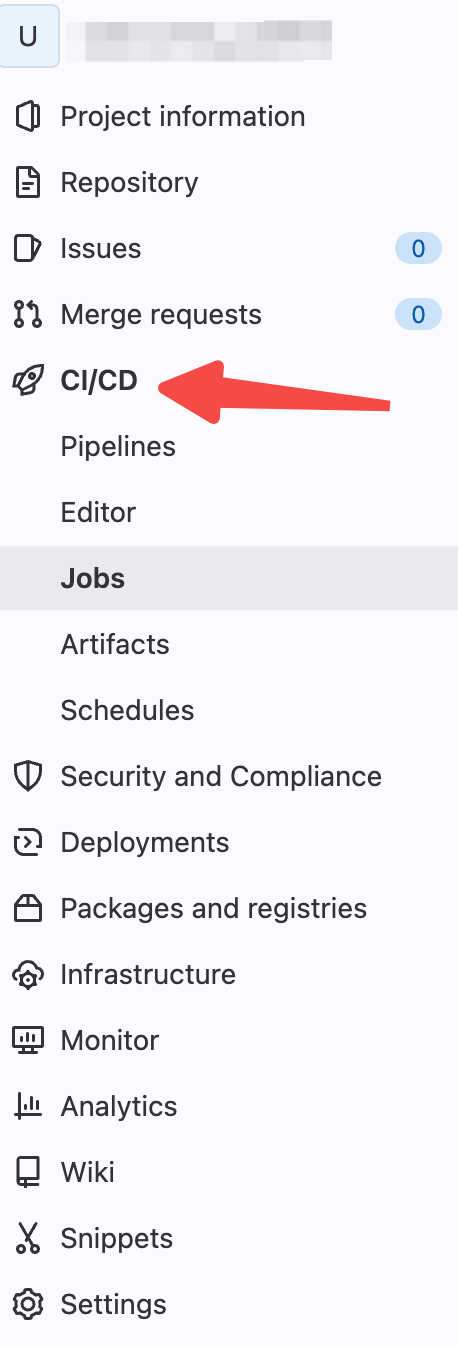 在项目的左边栏可以看到“小火箭CI/CD”