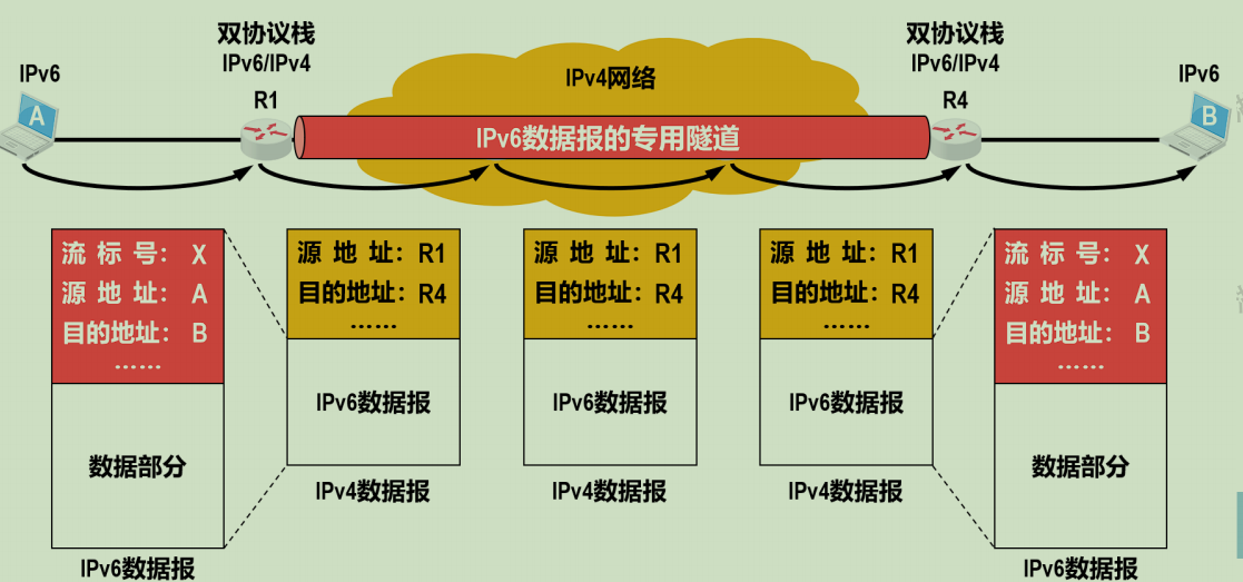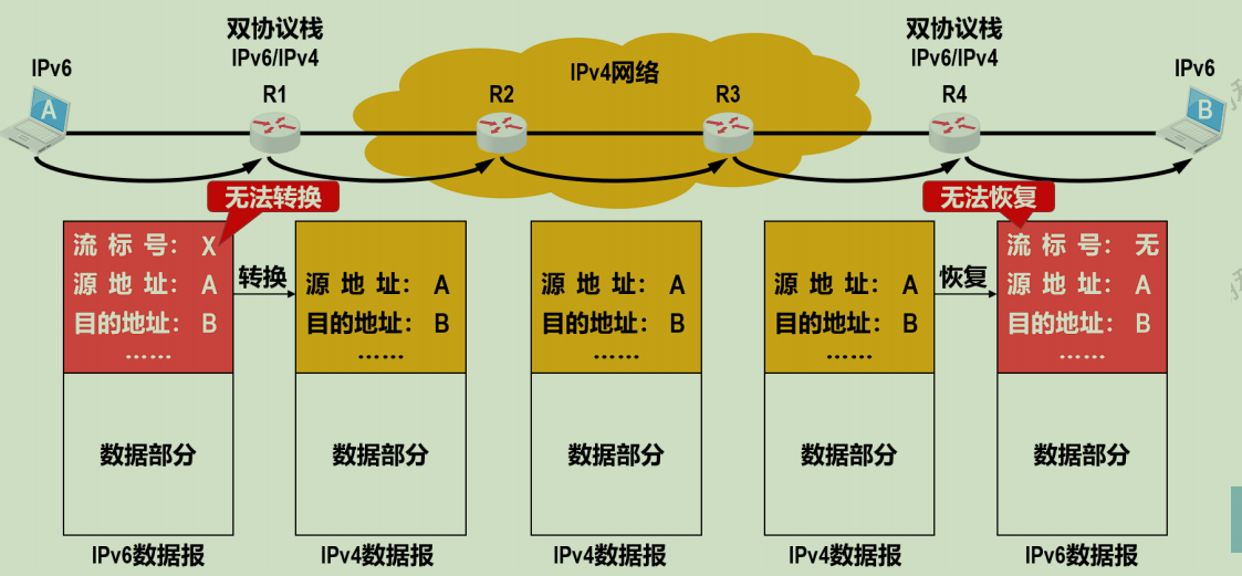 新部署的IPv6系统必须能够向后兼容,也就是IPv6系统必须能够接收和转发IPv4数据报,并且能够为IPv4数据报选择路由