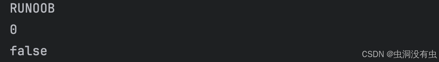 func main() {// 声明一个变量并初始化var a = "RUNOOB"fmt.Println(a)// 没有初始化就为零值var b intfmt.Println(b)// bool 零值为 falsevar c boolfmt.Println(c)