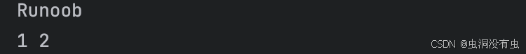 func main() {var a string = "Runoob"fmt.Println(a)var b, c int = 1, 2fmt.Println(b, c)