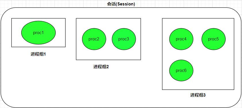 刚刚我们谈到了进程组的概念, 那么会话又是什么呢? 会话其实和进程组息息相关, 会话可以看成是一个或多个进程组的集合, 一个会话可以包含多个进程组。每一个会话也有一个会话 ID(SID)