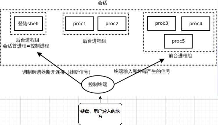 在 UNIX 系统中,用户通过终端登录系统后得到一个 Shell 进程,这个终端成为 Shell 进程的控制终端。控制终端是保存在 PCB 中的信息,我们知道 fork 进程会复制 PCB 中的信息,因此由 Shell 进程启动的其它进程的控制终端也是这个终端。默认情况下没有重定向,每个进程的标准输入、标准输出和标准错误都指向控制终端,进程从标准输入读也就是读用户的键盘输入,进程往标准输出或标准错误输出写也就是输出到 显示器上。另外会话、进程组以及控制终端还有一些其他的关系,我们在下边详细介绍一下: