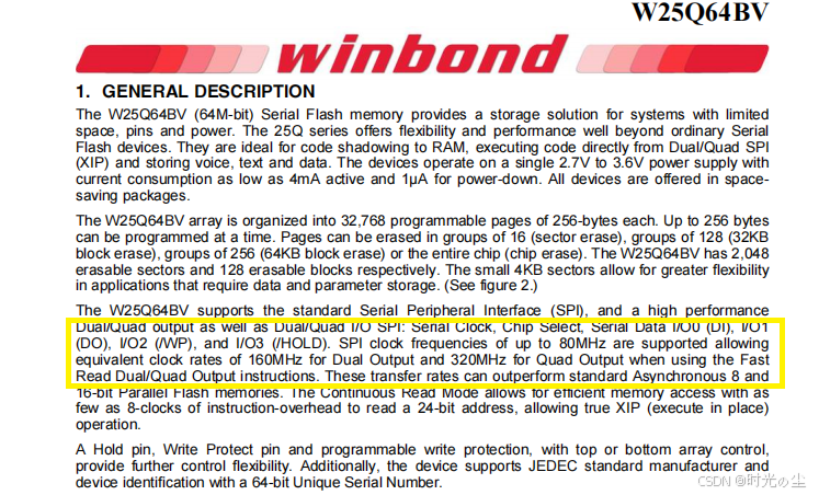 时钟频率:80MHz / 160MHz (Dual SPI) / 320MHz (Quad SPI)