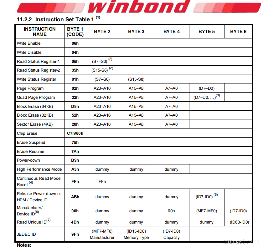 这些是我们想要操作W25Q64是需要的一些指令集,下面对常用的一些进行讲述: