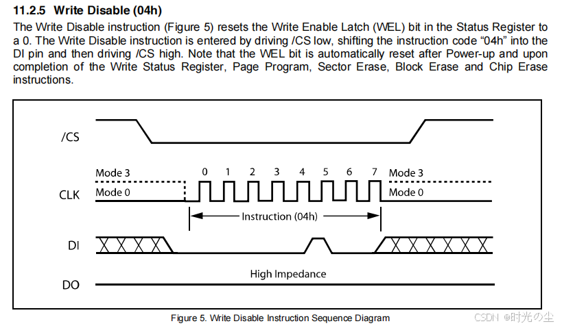 - 通过 DI 引脚发送 1 字节指令码 04h。