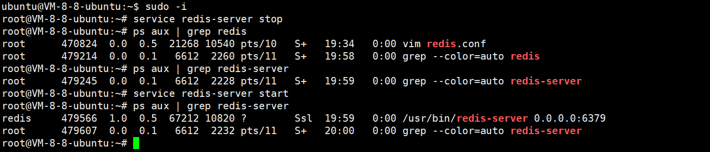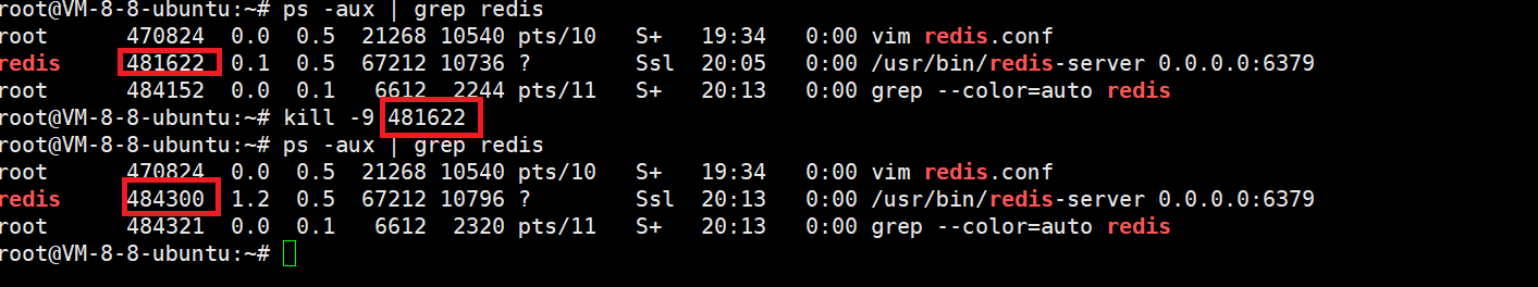 然后通过kill进程的(如果通过service redis-server restart的方式重新启动,redis会重新生成快照)方式重新启动redis服务器: