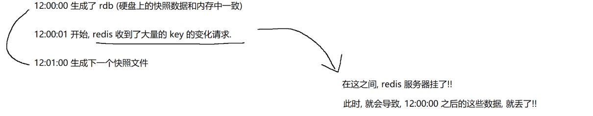 正因为rdb生成的不能太频繁,这就导致,快照里的数据,和当前实时的数据情况可能存在偏差~~