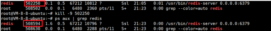 这里注意:如果使用的是centos系统,这里杀掉redis进程之后就不会显示了,而不是像此处一样显示另一个端口号!!!