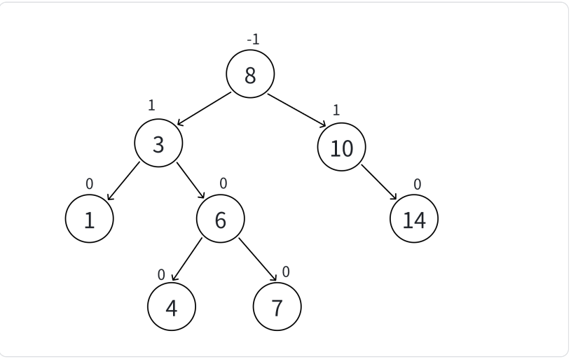 • AVL树实现这里我们引入一个平衡因子(balance factor)的概念,每个结点都有一个平衡因子,任何结点的平衡因子等于右子树的高度减去左子树的高度,也就是说任何结点的平衡因子等于0/1/-1。AVL树并不是必须要平衡因子,但是有了平衡因子可以更方便我们去进行观察和控制树是否平衡,就像一个风向标一样。