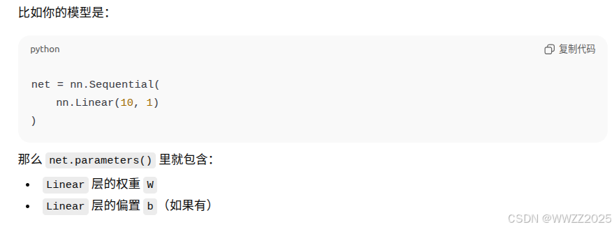 (2)nn.Linear(input_shape, 1, bias=False):构造线性模型,(输入X的维度,输出只有1个,无偏置)