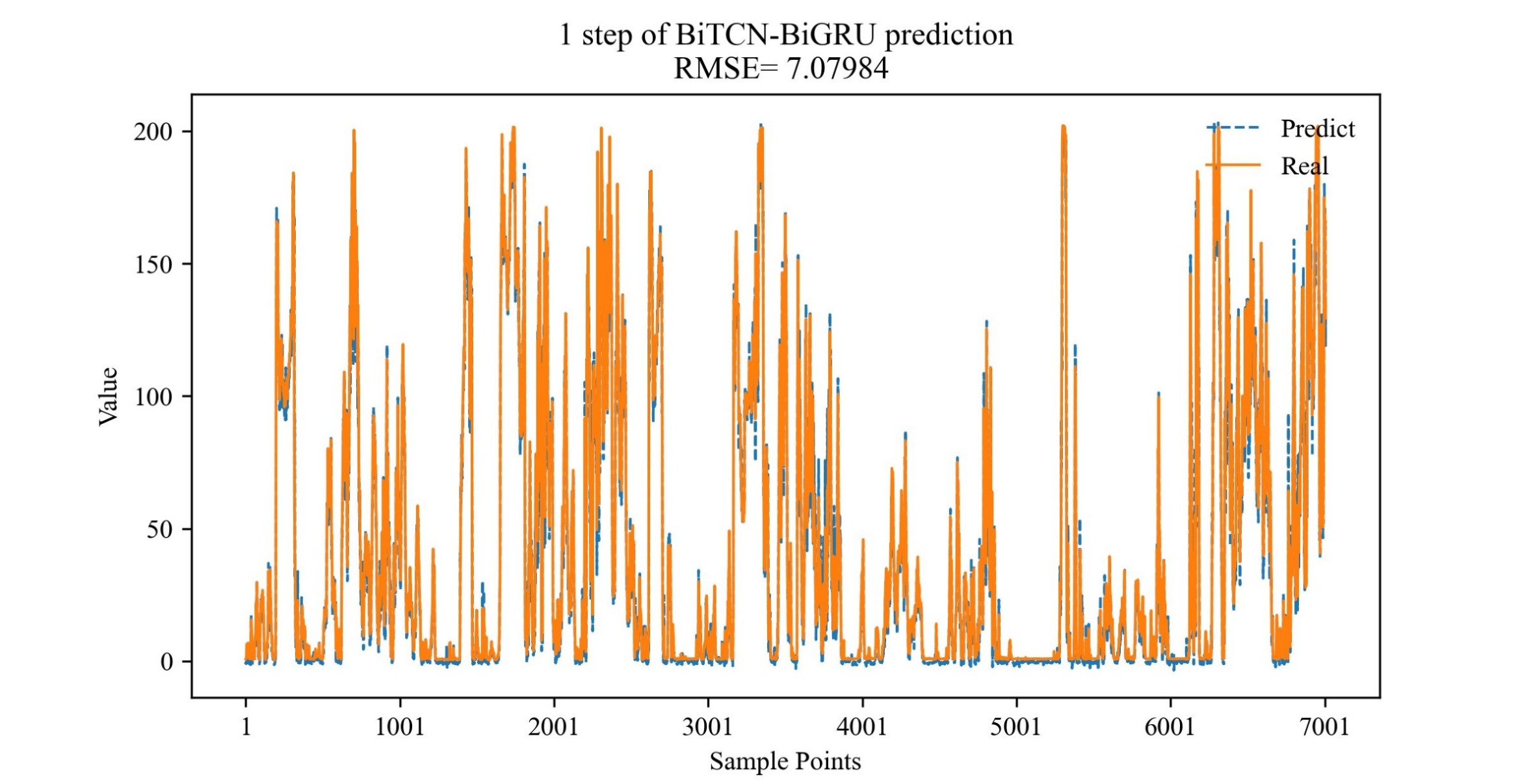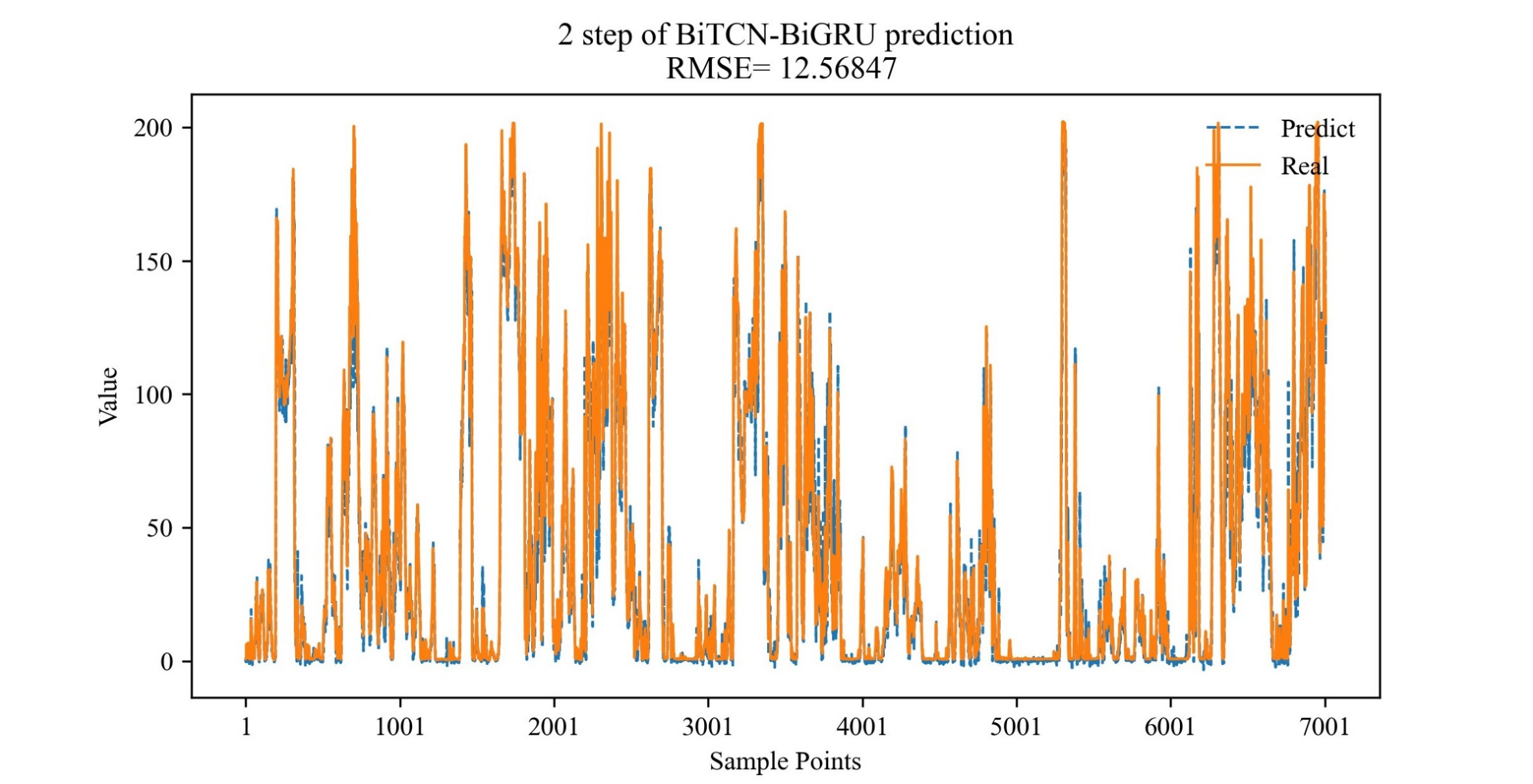 传统的单一循环神经网络(如单向GRU或LSTM)在处理长时依赖、多步并行预测以及特征多尺度建模时,容易出现特征提取不足、梯度传递效率低、对未来多步关联性建模弱等问题。为提升时序预测的精度与稳定性,本算法将双向时间卷积网络(BiTCN, 通过双向封装的膨胀卷积捕获多尺度历史信息)与双向GRU(BiGRU, 通过门控与双向结构强化前后依赖)进行级联融合,构建 BiTCN-BiGRU 复合深度时序特征提取框架,实现多特征输入的多步预测。模型利用膨胀卷积的因果/跨尺度感受野扩展能力与双向循环的上下文融合优势,在多变量、长窗口、滑动预测任务中获取更丰富的时间相关模式,提高多步预测精度与泛化能力。