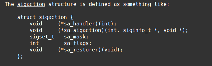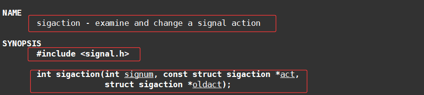 是指定信号的编号。若act指针非空,则根据act修改该信号的处理动作。若oact指针非 空,则通过oact传