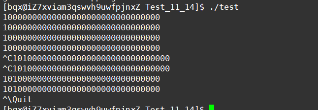 SIGQUIT信号未产生过,一旦产生SIGQUIT信号将被阻塞,它的处理动作是用户自定义函数sighandler。