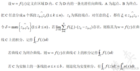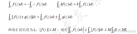 复变函数积分与实变函数积分的定积分有类似的性质: