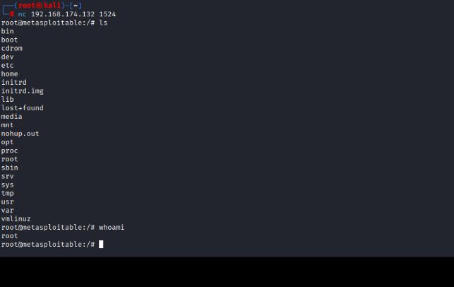 用netcat 去链接目标主机192.168.174.132 1524 端口