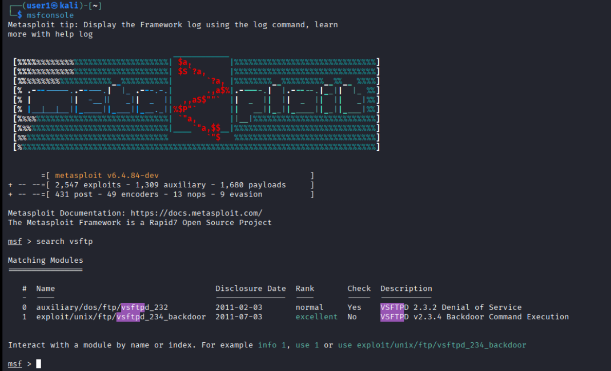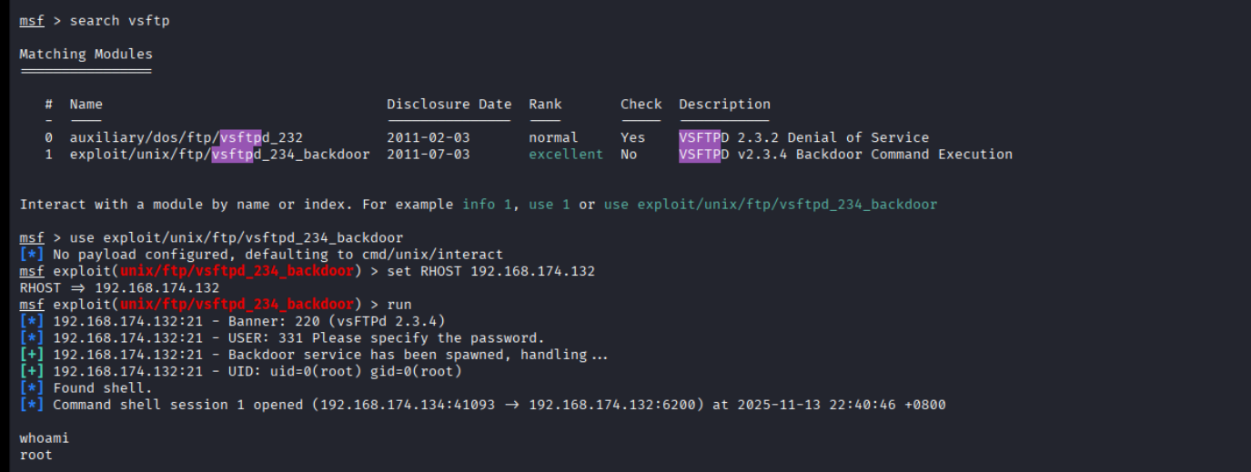 use exploit/unix/ftp/vsftpd_234_backdoor
